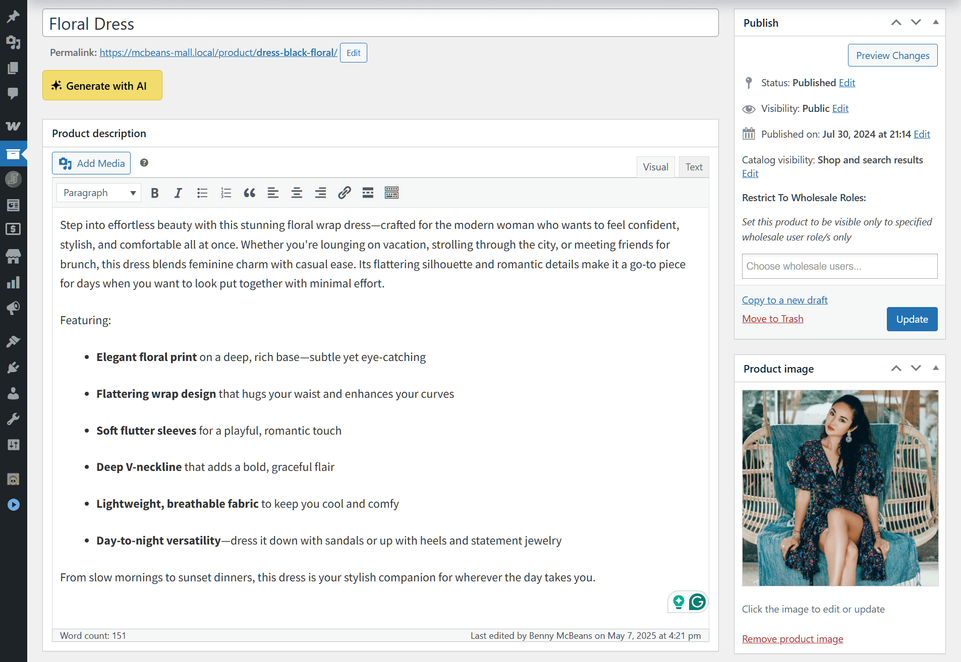 • AI content generation: Instantly create both short and long product descriptions that are optimized for SEO. You can prompt the AI to use an “intimate” or “emotional” tone to match the Valentine’s Day mood.